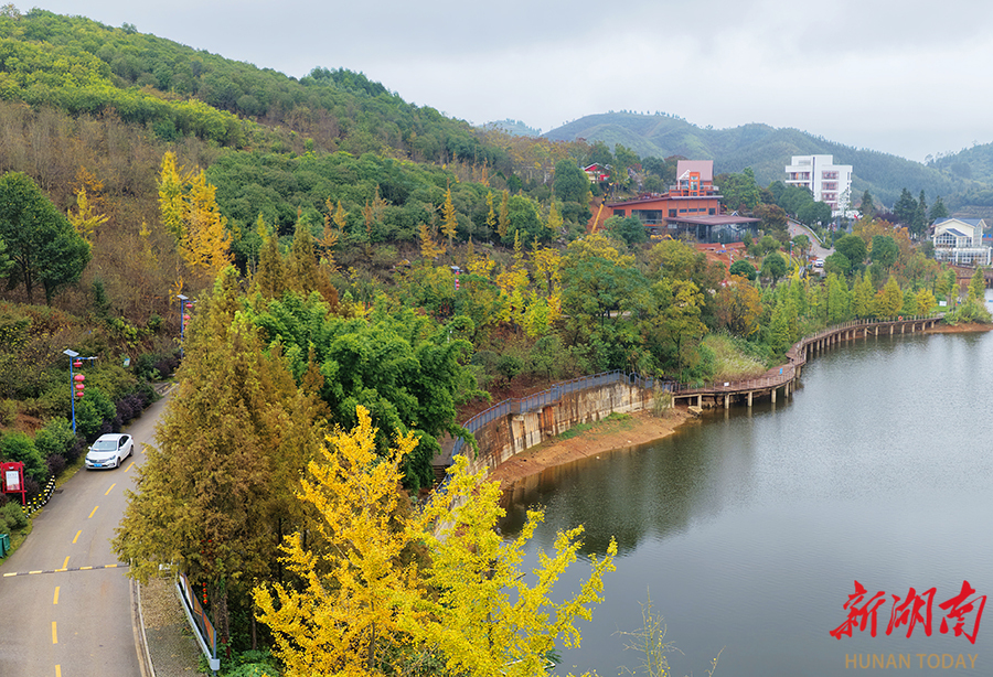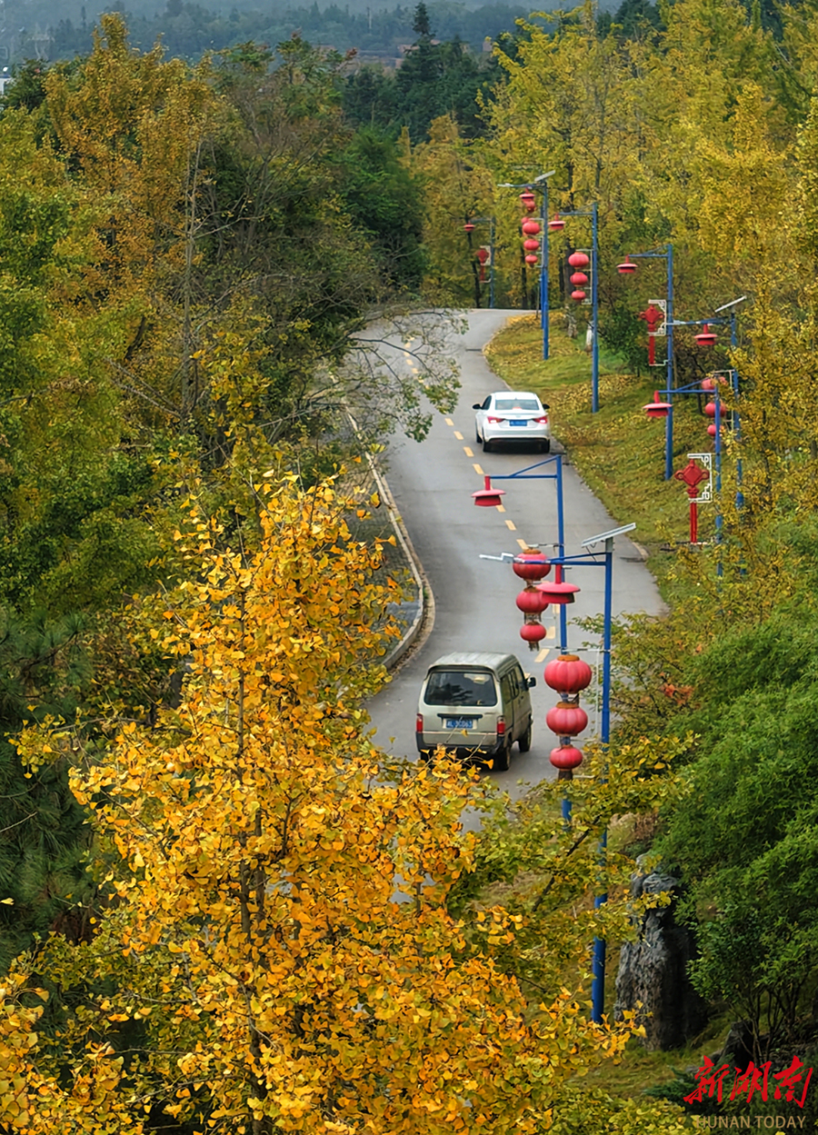 11月10日,嘉禾县龙潭镇扶塘村,村道银杏树一派金黄,展现出迷人景色。近年来,该村通过绿化美化、完善设施等举措,推进美丽乡村建设,村容村貌焕然一新,打造出生态宜居新农村典范。 黄春涛 摄(湖南图片库)