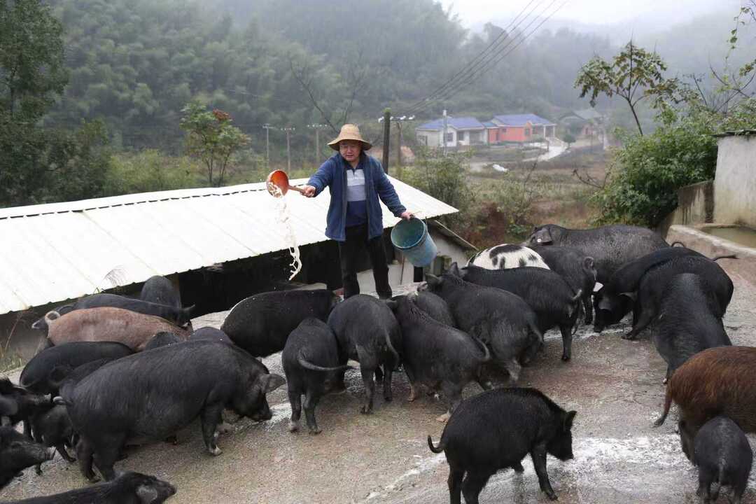 2021年,了解到“藏香猪”养殖模式后,他发现这个又名“人参猪”的瘦肉型猪种,以天然野生植物及果实为主食,非常适合落家坪的自然环境。于是,一座占地3000多平方米的养殖基地动工兴建,高峰期存栏量达2000多头。凭借原生态的饲养方式与驻村工作队的帮扶,杨景义的“藏香猪”逐渐打开市场,供不应求。