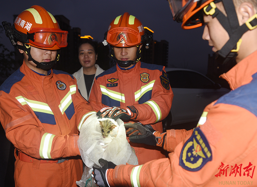 11月10日,嘉禾县九老峰,消防救援人员与林业工作人员一道放生国家二级保护动物斑林狸。11月9日,县消防救援大队与林业部门合作救助这只误入社区的珍稀动物。斑林狸又叫斑灵猫、点斑灵狸等,属灵猫科,栖息于常绿阔叶林,行动敏捷,以小型脊椎动物为食。 黄春涛 林竹 摄影报道(湖南图片库)