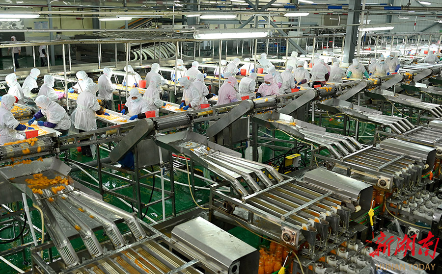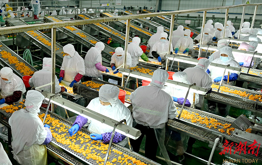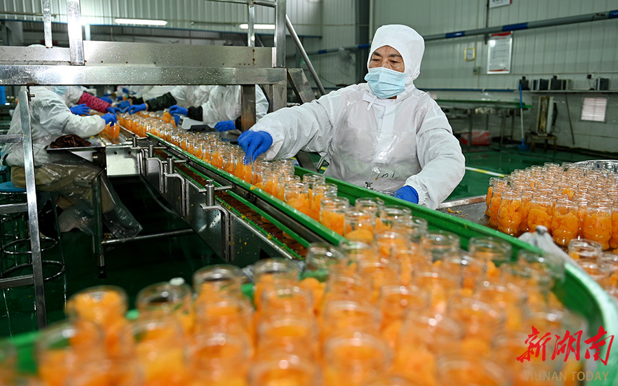 11月10日,洞口县辣妹子食品有限公司,工人在加工柑橘罐头。近年来,该县依托丰富农产品资源,大力发展深加工产业,延伸产业链条,促进农业增效、农民增收。 滕治中 黄巍 摄影报道(湖南图片库)