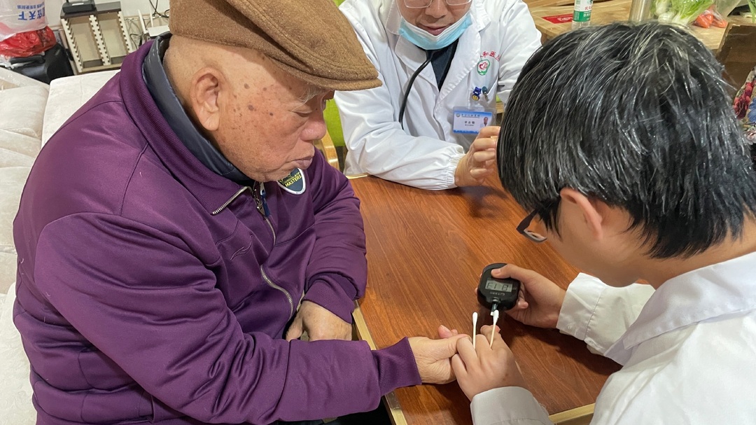 活动前,师生志愿者提前抵达现场,有序布置检测区域,将血压计、血糖仪、健康档案记录表等物资摆放整齐,在显眼位置张贴温馨提示语,为服务开展做好充分准备。服务过程中,志愿者们分工明确,为社区老年居民免费提供血压测量、血糖检测服务,一边熟练操作专业仪器,一边耐心询问老人日常饮食、作息习惯及用药情况,细致记录每一项检测数据。
