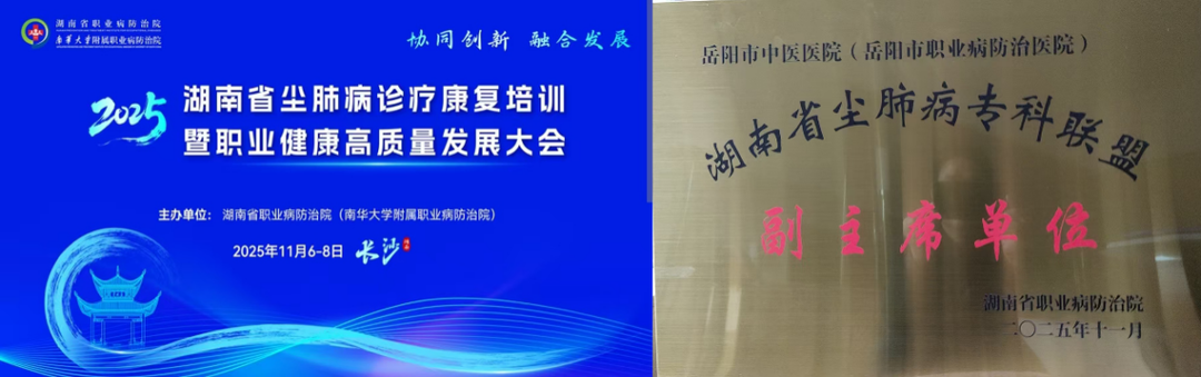 湖南日报·新湖南客户端11月11日讯(通讯员 谭媛 陈纯)2025年11月6日至8日,湖南省尘肺病诊疗康复培训暨职业健康高质量发展大会在长沙举行。会上,岳阳市中医医院(岳阳市职业病防治医院)被正式授予“湖南省尘肺病专科联盟副主席单位”,标志着医院在尘肺病诊疗与康复领域的专业能力获权威认可。