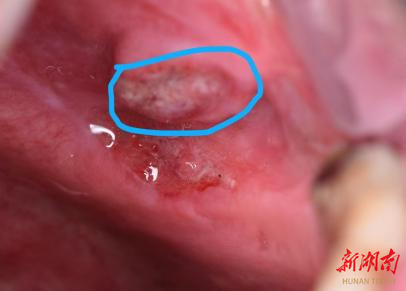据老人描述,其溃疡反复发作已超过两个月,初期仅为轻微不适,后逐渐加重,严重影响进食。经口腔科副主任、主任医师贺祖武详细检查,发现溃疡面达1.5×2.0厘米,边缘不规则,基底较硬。“检查过程中,我们发现在紧挨溃疡病变部位有一颗佩戴了约两年的假牙,该假牙制作粗糙,边缘锐利如刀刃,挂钩部位已严重变形,取下假牙后,发现假牙下方的牙龈还存在一个1.0×2.0厘米大小的溃疡,我们判断患者的两处溃疡面均与这颗劣质假牙长期摩擦颊黏膜,造成持续性损伤有关。”据贺祖武介绍,结合两处溃疡面的活检病理检查结果,最终确诊为颊黏膜鳞癌+牙龈癌。