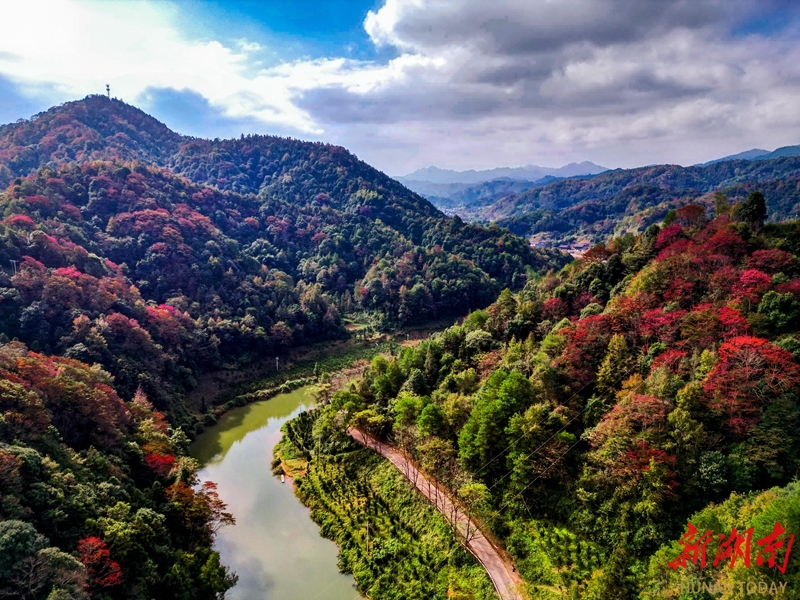 11月12日,通道侗族自治县双江镇红香自然村,幽谷中红叶烂漫,色彩斑斓,构成一幅绝美深秋画卷。 尹序平 摄(湖南图片库)