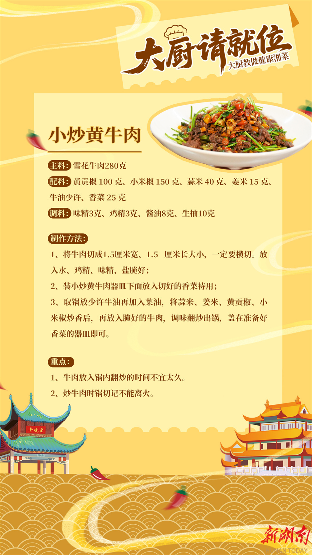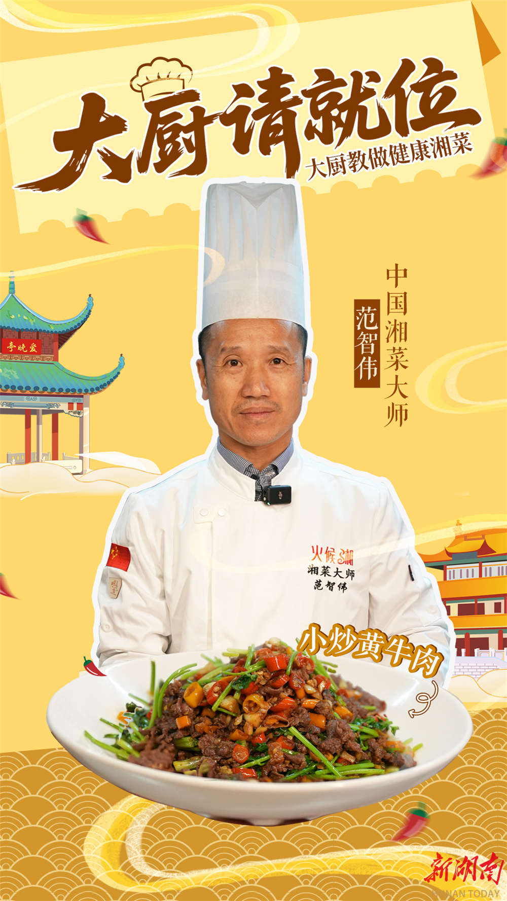 18秒能做什么?《大厨请就位》栏目本期特邀中国湘菜大师范智伟,用18秒教你做出一道湘菜馆的招牌菜——小炒黄牛肉!选肉技巧,火候掌控,锁鲜秘诀,大厨就位,一学就会。猛火爆炒,牛肉嫩滑,香辣过瘾,看完视频,敢不敢接受18秒出菜挑战?转发给家里掌勺的TA,今晚就露一手吧! #转给你家里做饭的人#大厨教做健康湘菜
