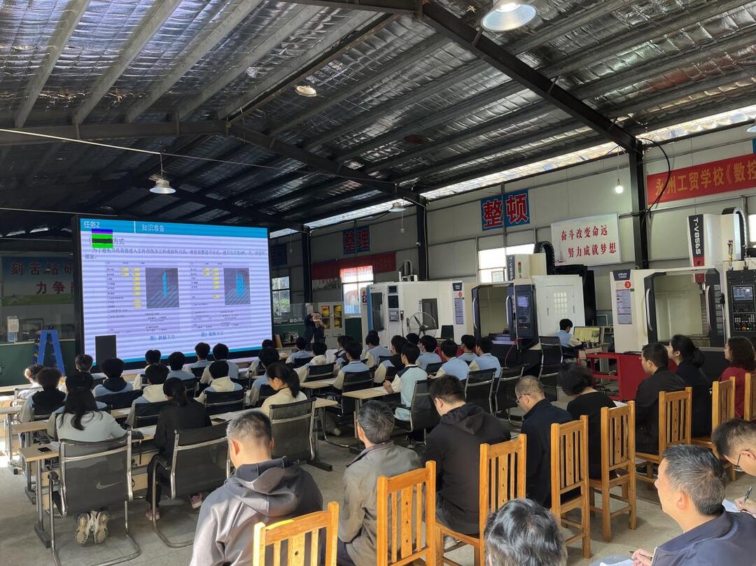 在寿雁校区,听课教师深入各实训课堂进行现场观摩。汽修实训室内,李来吉老师熟练演示轮胎检修全流程,涵盖漏点定位、轮胎与钢圈的规范拆装、修补及复检等关键技能,讲解细致、操作规范;数控模具实训室里,孙玉俊老师以型腔槽板零件的加工编程为例,完整讲授从图纸分析、工艺规划到实操加工的全过程,充分体现理实一体化的教学成效。