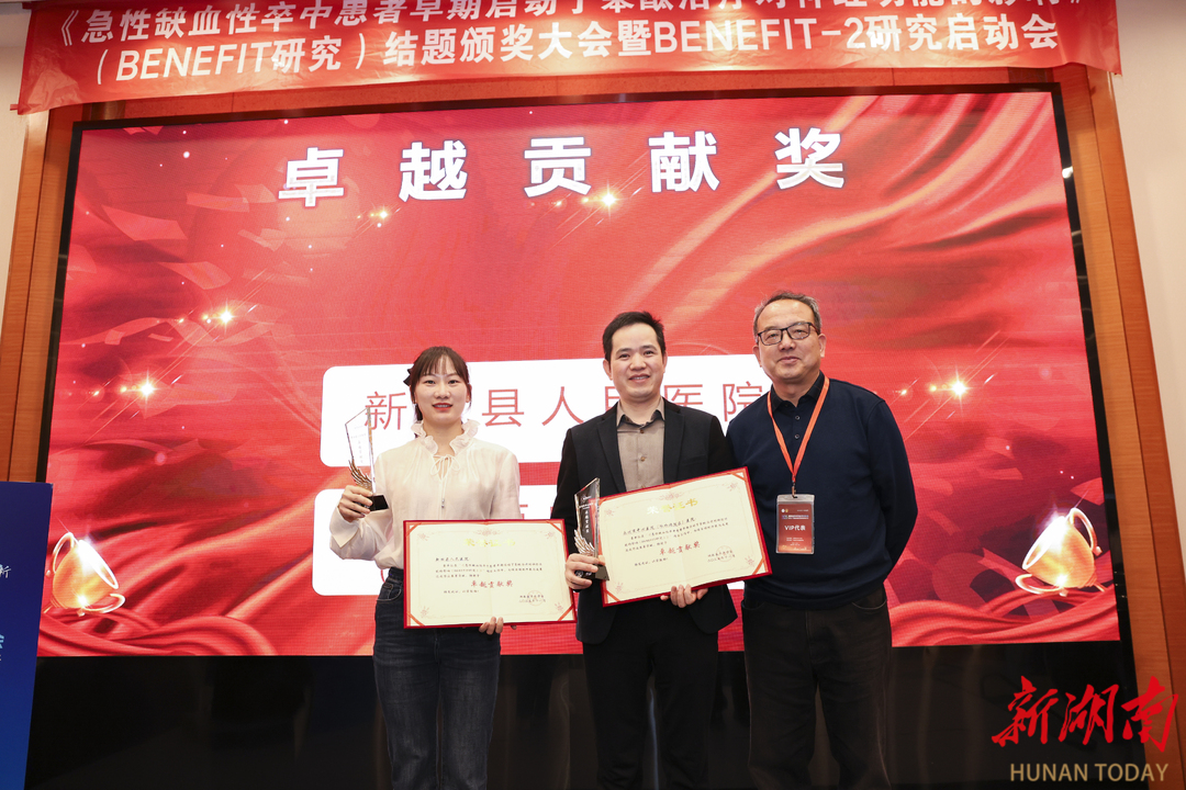 湖南日报·新湖南客户端11月13日讯(通讯员 谢梅林 郑海英)11月9日,由中南大学湘雅医院牵头的国家级临床研究项目——BENEFIT研究顺利结题。在此次汇聚全国19家顶尖三甲医院的高水平科研竞逐中,新田县人民医院神经内科团队凭借卓越表现脱颖而出,荣获“卓越贡献奖”;项目负责人谢梅林副主任医师获评“个人突出贡献奖”。