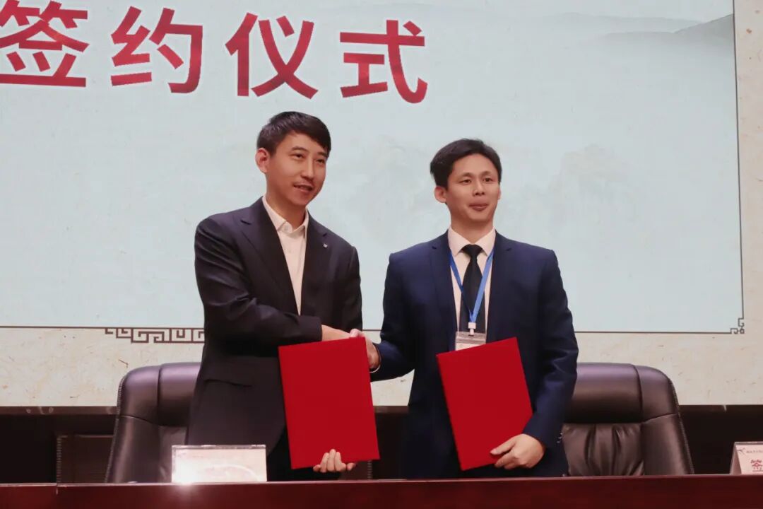 “经典经方学术流派许家栋名医工作室”落户常德签约仪式现场,常德市第一中医医院院长李振龙(右)代表医院与许家栋教授(左)签约。