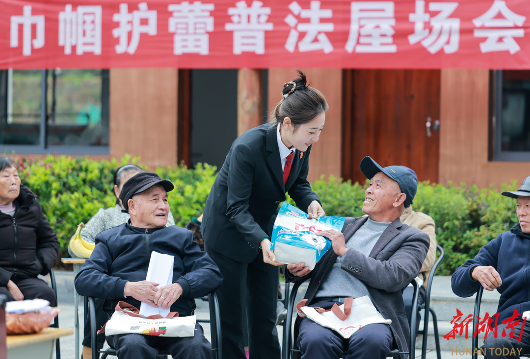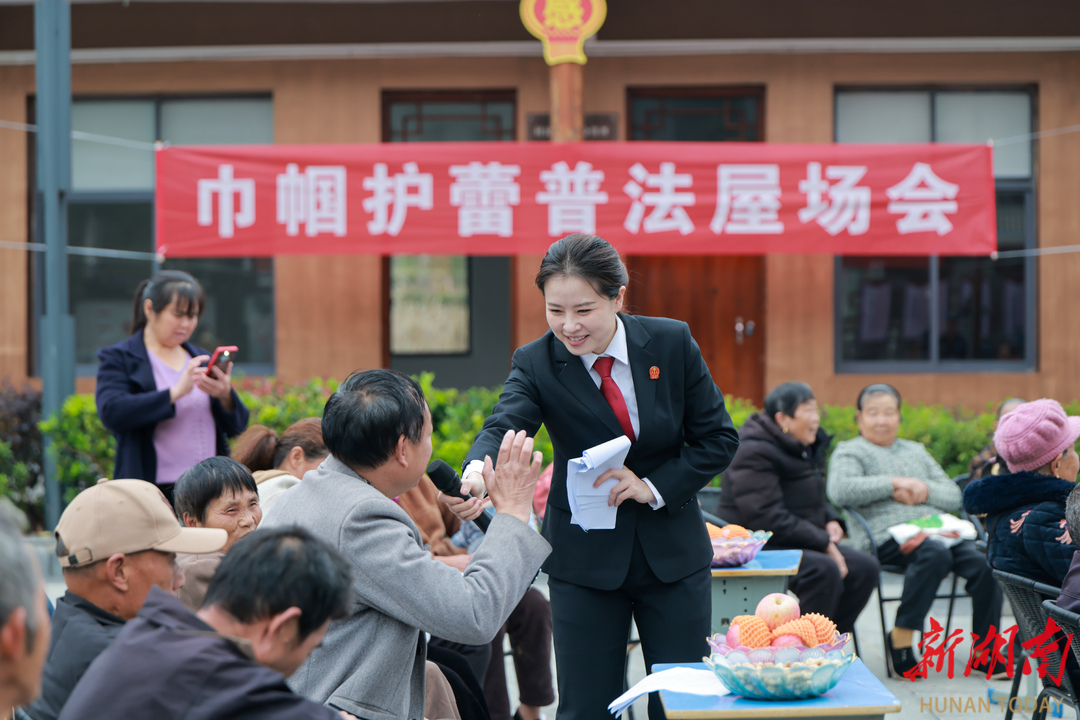随即,桑植县人民法院民事审判庭“法官姐姐”叶光双用地道方言开讲,从村里常见的土地边界纠纷、彩礼纠纷案件切入,迅速拉近与村民的距离,台下不时传来附和声。