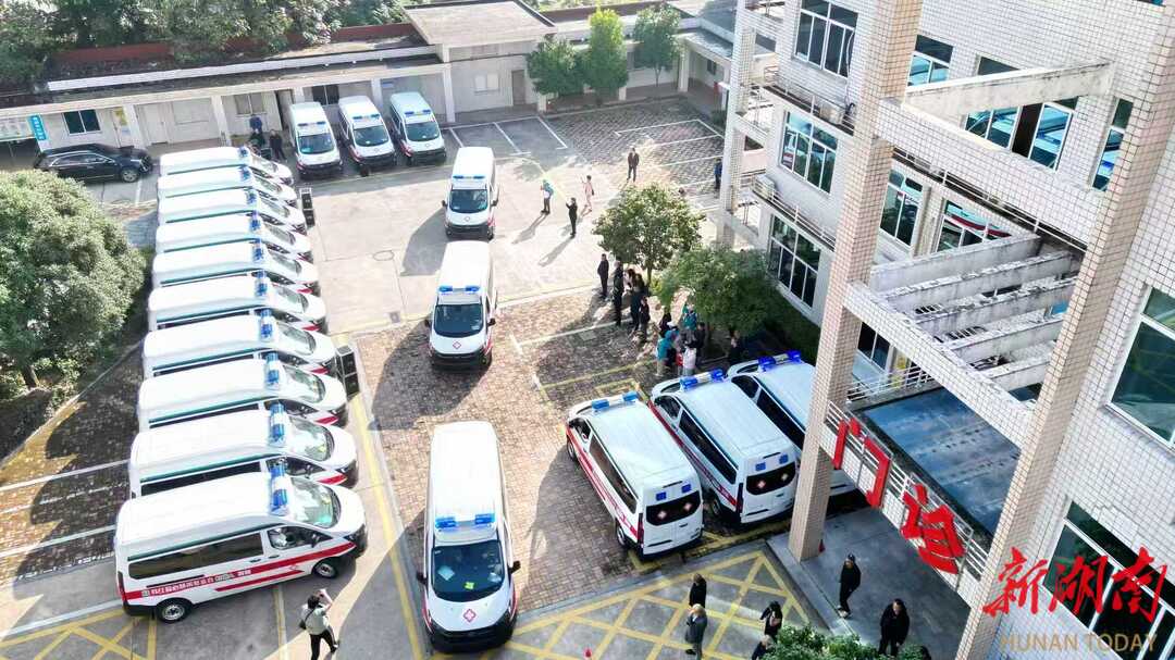 20辆崭新的救护车依次出发,驶往湖南20家乡镇卫生院。