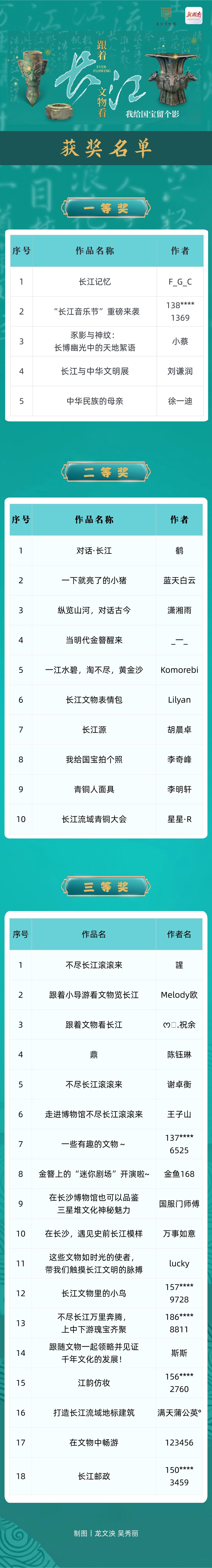 这次线上作品征集活动是一次大众参与的“寻宝”之旅,更是一场光影与历史的奇妙碰撞。带着情感和创意的作品如同点点繁星,为长江与中华文明增添光彩。专家评审团从文化内涵、专业准确度、创新创意等方面进行了公平、公正的评选,最终评选出一等奖5名、二等奖10名、三等奖18名。获奖者将获得由主办方颁发的获奖证书和奖金。
