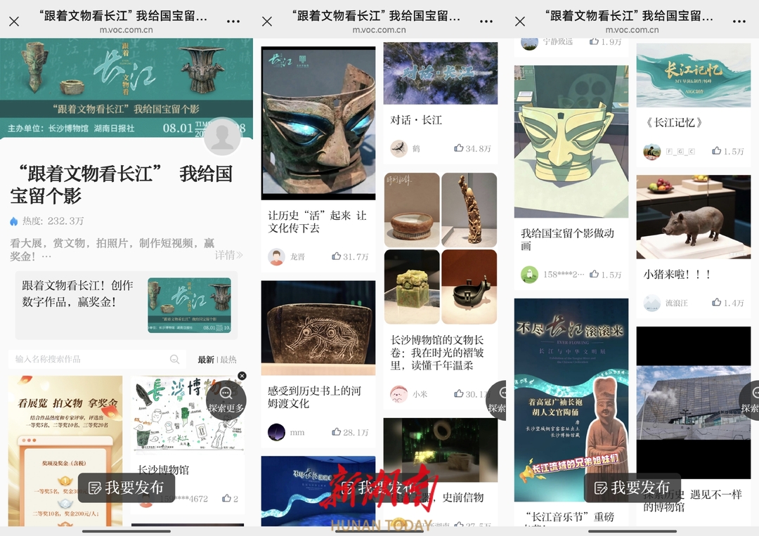 “跟着文物看长江”我给国宝留个影活动由长沙博物馆、湖南日报社主办,是2025年文化和自然遗产日主场城市活动主题展览“不尽长江滚滚来——长江与中华文明展”的配套活动,意在让更多市民走进展厅,了解展览所呈现的厚重历史和灿烂文明,对照当下生活追寻文明传承的“足迹”、感受文明传承的意义。