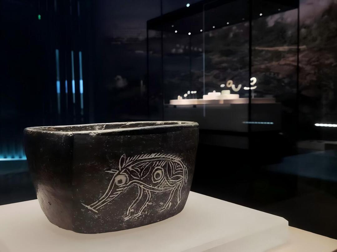 在长沙博物馆展厅的幽光里,河姆渡文化猪纹陶钵如一位沉默的时光信使,与不远处,良渚玉琮的神人纹随葬礼器们展开了跨越时空天地的喃喃对话。