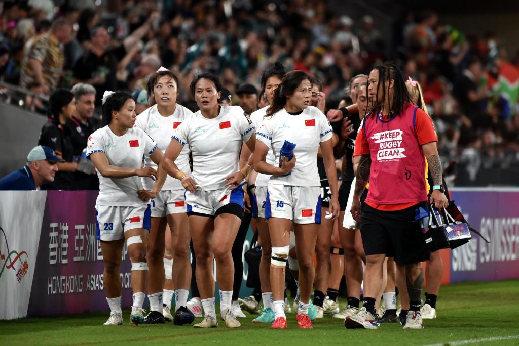 3月28日,中国队球员在香港国际七人橄榄球赛女子A组比赛后。新华社发(卢炳辉摄)