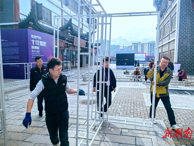 11月14日,张家界市大庸古城,工作人员在布展。湖南日报全媒体记者 郭立亮 通讯员 吴勇兵 摄影报道