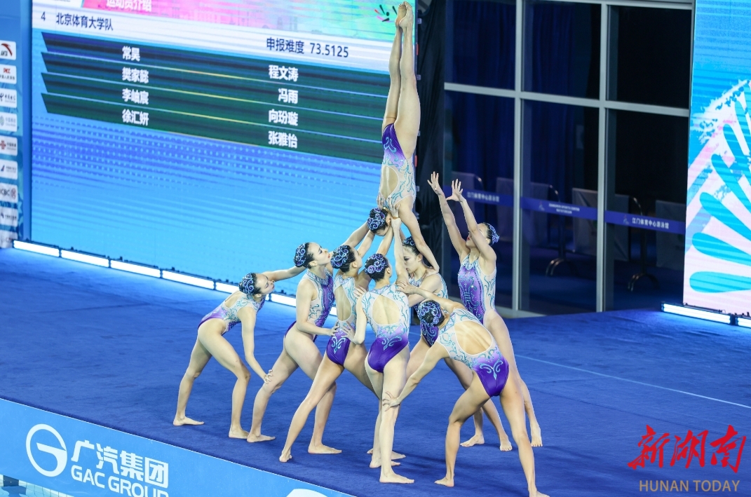 晚上8时许,在江门展开争夺的花游的集体冠军率先出炉,巴黎奥运会冠军张雅怡、郴州妹子樊家懿(均为体教联合培养)水中绽放,与北京体育大学队队友默契共舞,在技术自选、自由自选、技巧自选三项比赛中一共拿到867.9665分,夺得冠军。两名湘妹子联袂为两日“无金”的湖南代表团,将金牌数刷新至5枚。