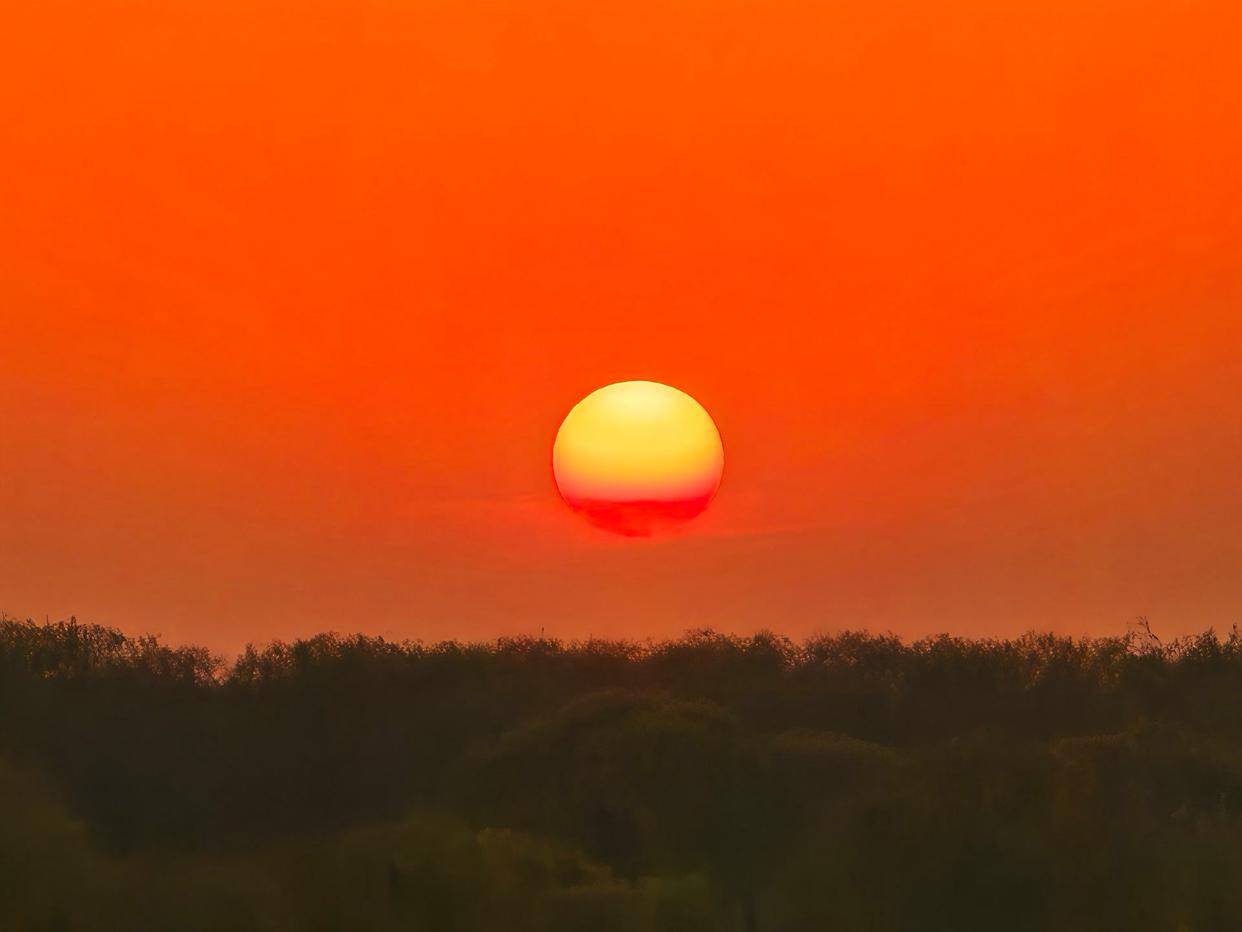 11月15日,伴随着一轮红日缓缓自地平面升起,东方的天空渐渐被染成了金红色。朝霞之中,初升的太阳就好像一盏大大的氛围灯,扮靓了今日的美好清晨。
