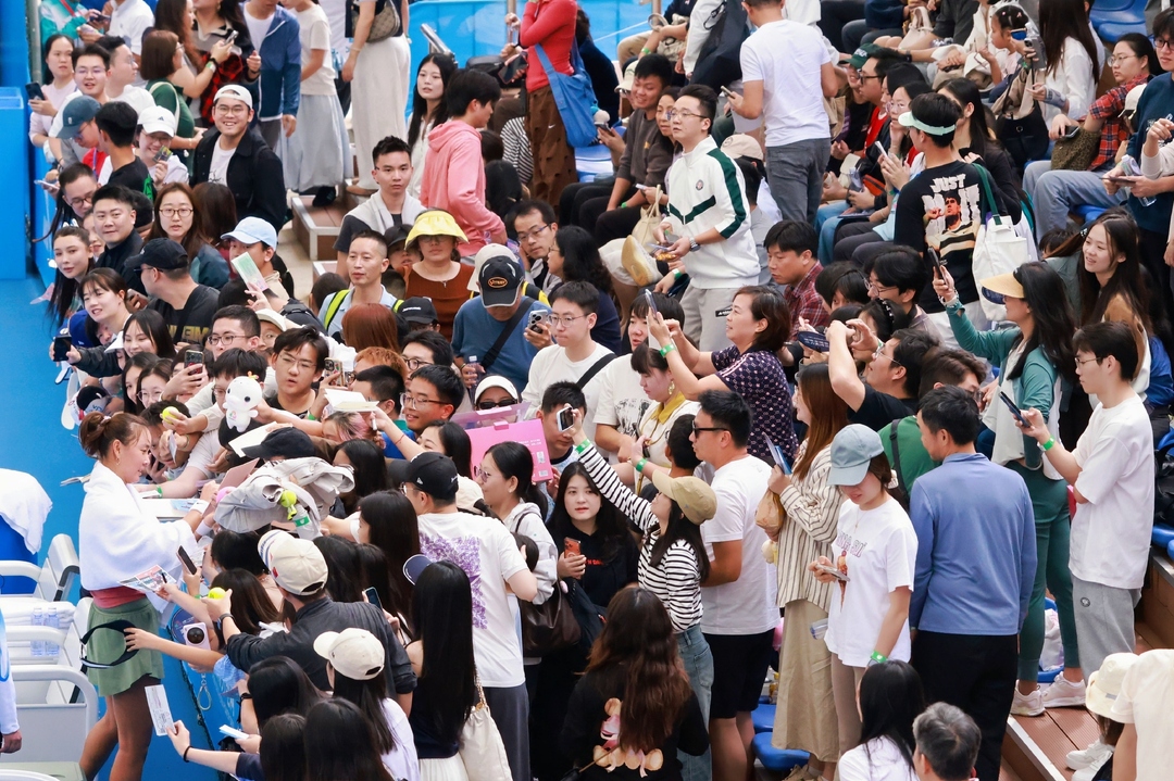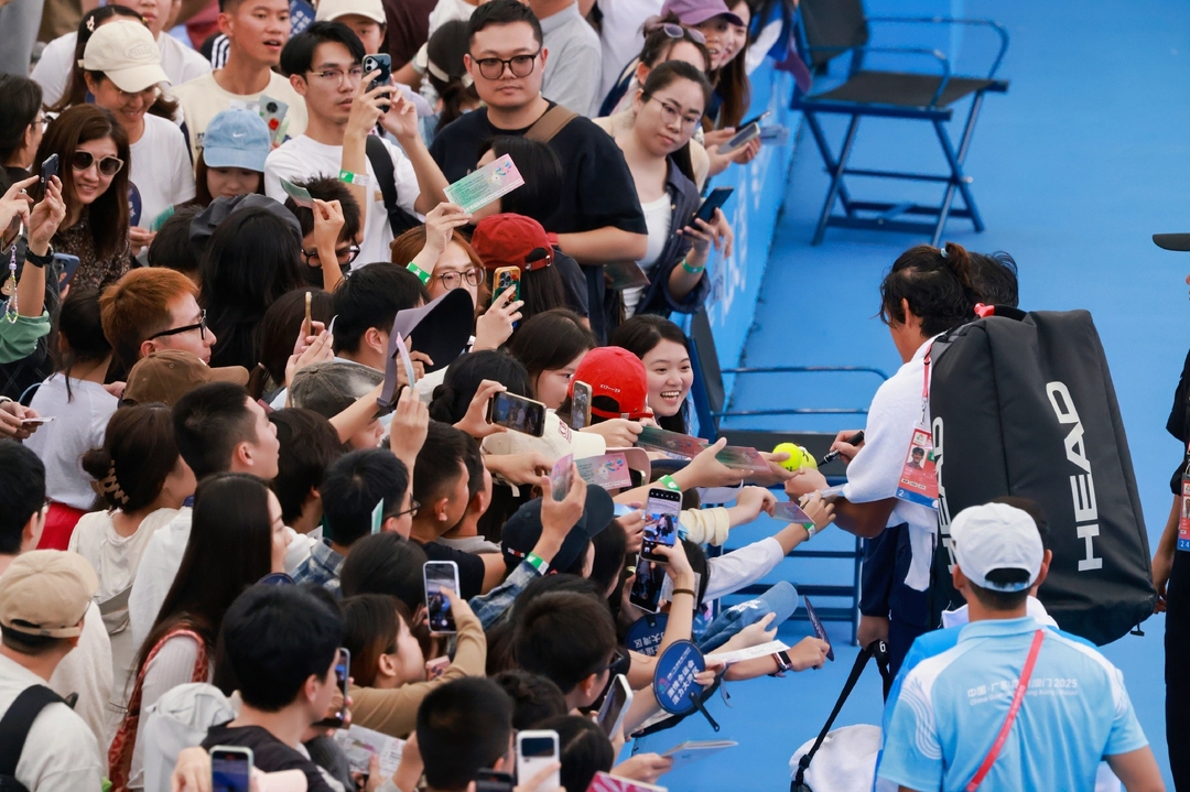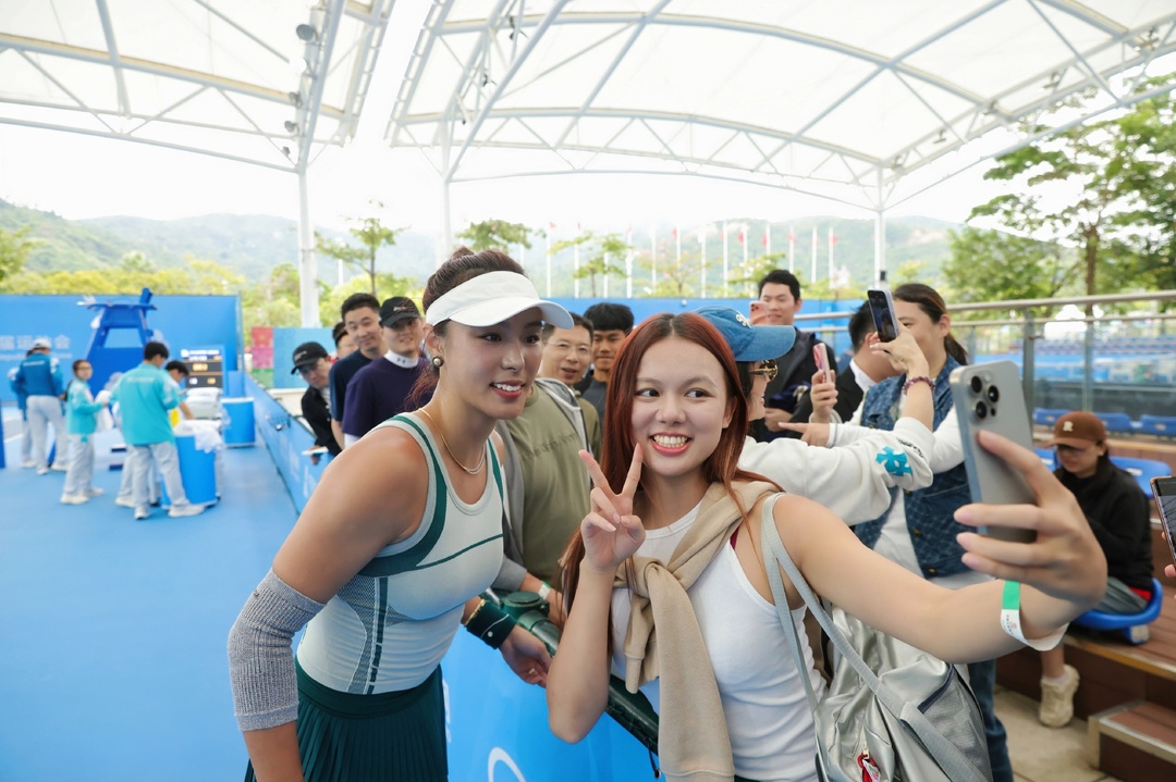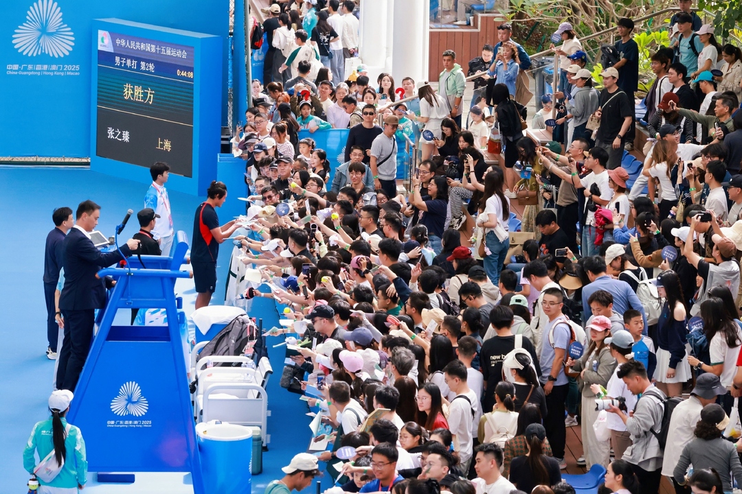 新湖南客户端11月15日讯(特派记者 胡旻)11月15日,第十五届全国运动会网球项目单项比赛渐入高潮,王欣瑜、张之臻、布云朝克特、吴易昺、朱琳、袁悦、王蔷等国内顶尖选手纷纷登场,珠海横琴国际网球中心人气爆棚,中心场上座率创开赛新高,外场加油声此起彼伏,特许商品专卖店排起了长龙。