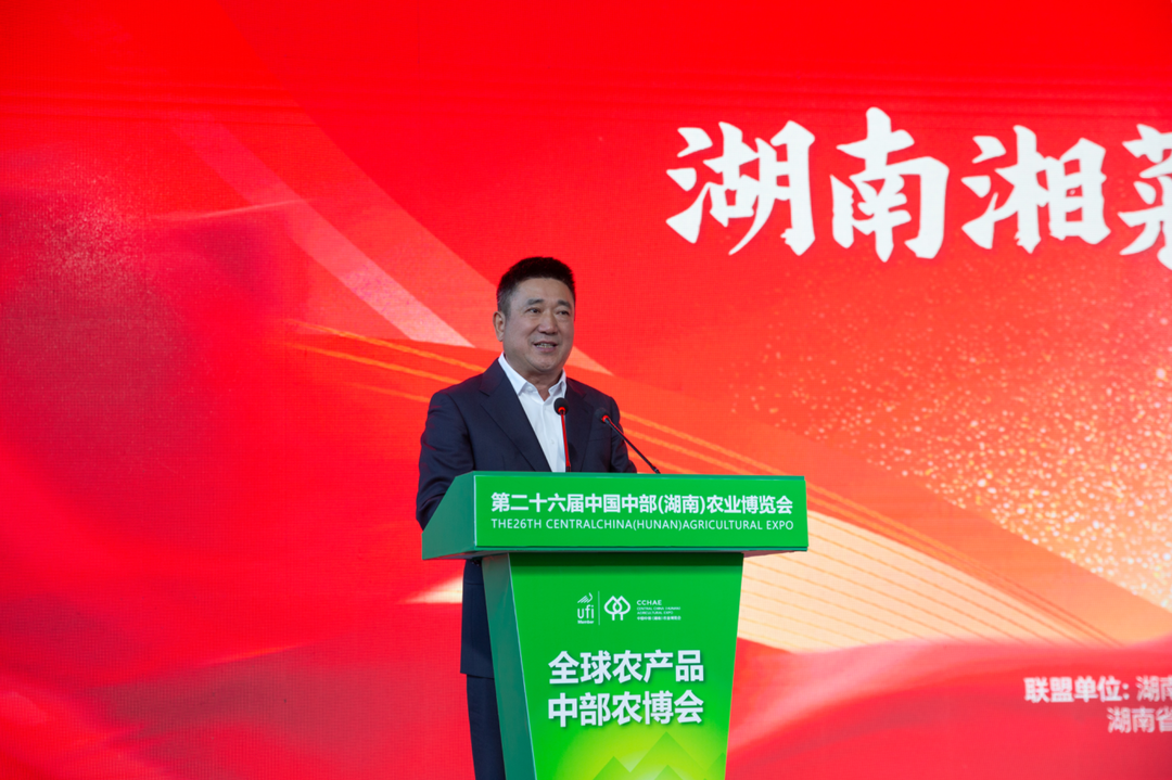 大会上,湖南红星国际展览有限公司总经理罗旭透露,第二十七届中国中部(湖南)农业博览会举办期间,主办方与湖南省湘菜食材产业联盟强强联合,11月13日至17日,同期隆重推出“湘菜食材展览会”。此外,双方还将合作打造2026年湘菜食材展览会,推动“湘材出湘、湘菜出海”、助力乡村振兴与农业现代化的重要引擎。