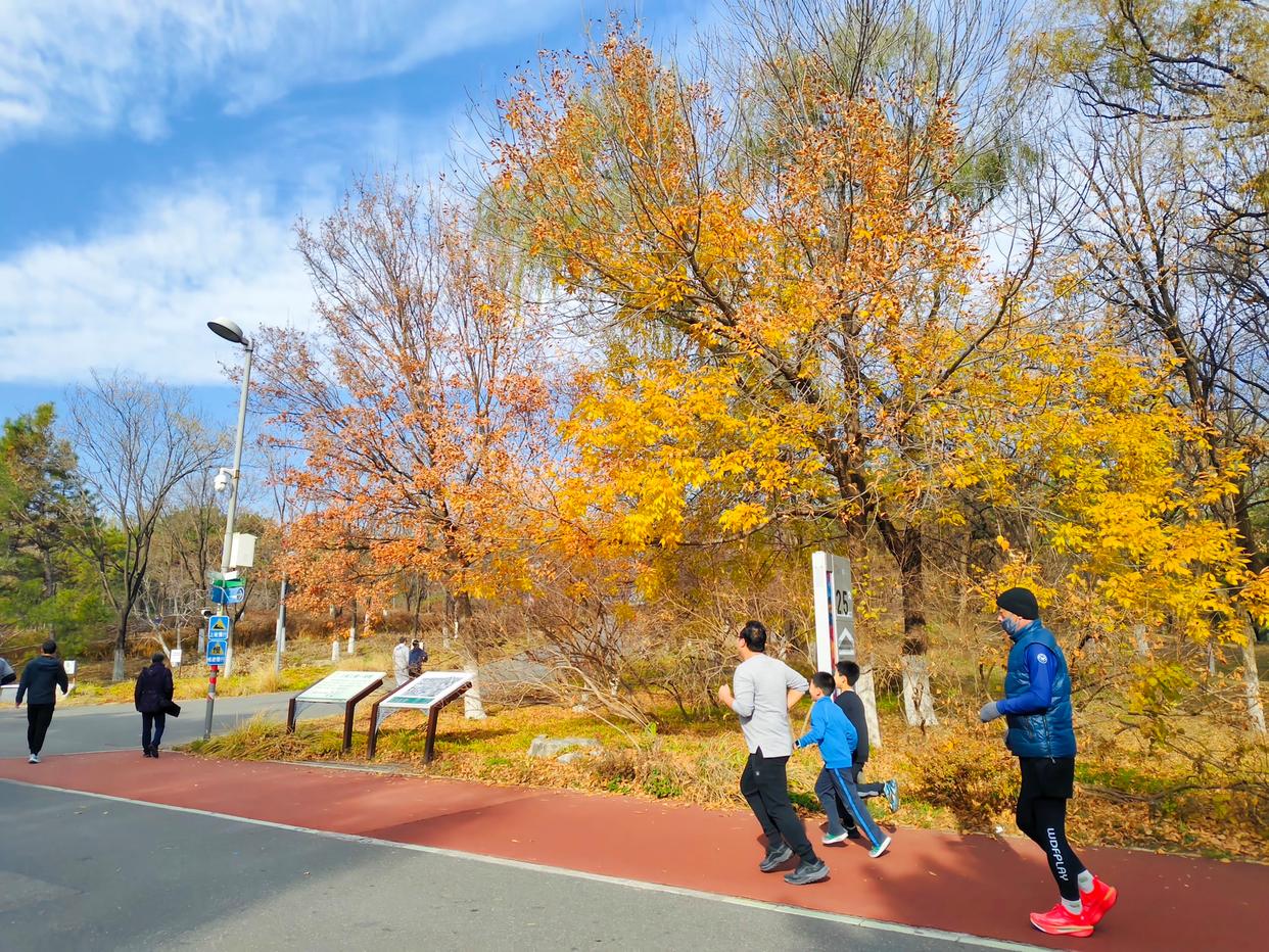 降温前晴日正好,跑者掠过林径,脚步带起风里的热乎气。秋的斑斓与冬的疏朗在此缠绵,周末来走走,把季节的温柔收进行囊。