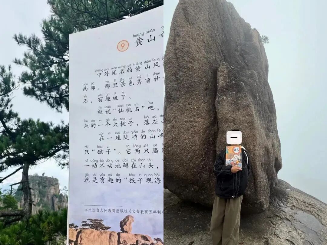 黄山的奇松怪石、云海冬雪没看到,但看到了一群揣着语文书打卡的小学霸。