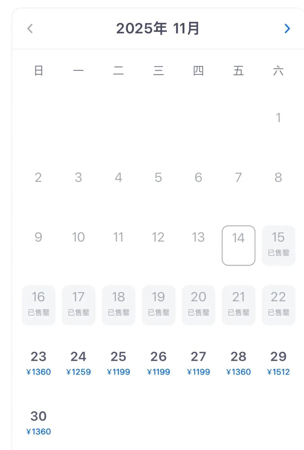 酒店价格同样飙升。广东佛山今年迎来首个中小学秋假,不少家长计划带孩子去省内热门的长隆系旗下乐园游玩,结果却发现长隆多个酒店11月11日至17日全部爆满。有家长在第三方渠道好不容易抢到一间房,结果却被告知要加价1400元,让家长难以接受。