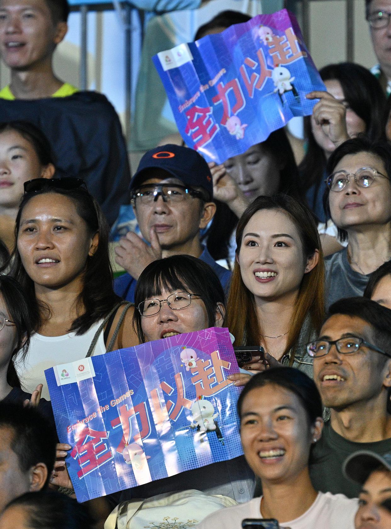 11月8日,观众为参赛运动员加油。当日,在香港进行的第十五届全国运动会沙滩排球女子决赛中,福建队组合薛晨/曾津津2比1战胜南京体育学院队组合严旭/周明利,获得冠军。新华社记者 陈铎 摄这座“全运之桥”见证并推动着三地共创历史同赴未来