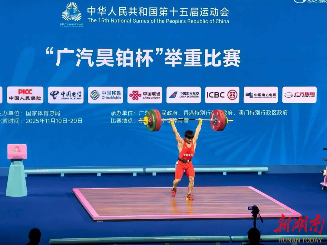 湖南日报·新湖南客户端11月16日讯(记者 蔡矜宜)11月16日,第十五届全运会举重男子项目在东莞开赛。在男子55公斤级决赛中,湖南中联重科举重队27岁运动员邹伟斌以抓举119公斤、挺举153公斤、总成绩272公斤的成绩勇夺冠军,为湖南代表团摘下本届全运会第7枚金牌。