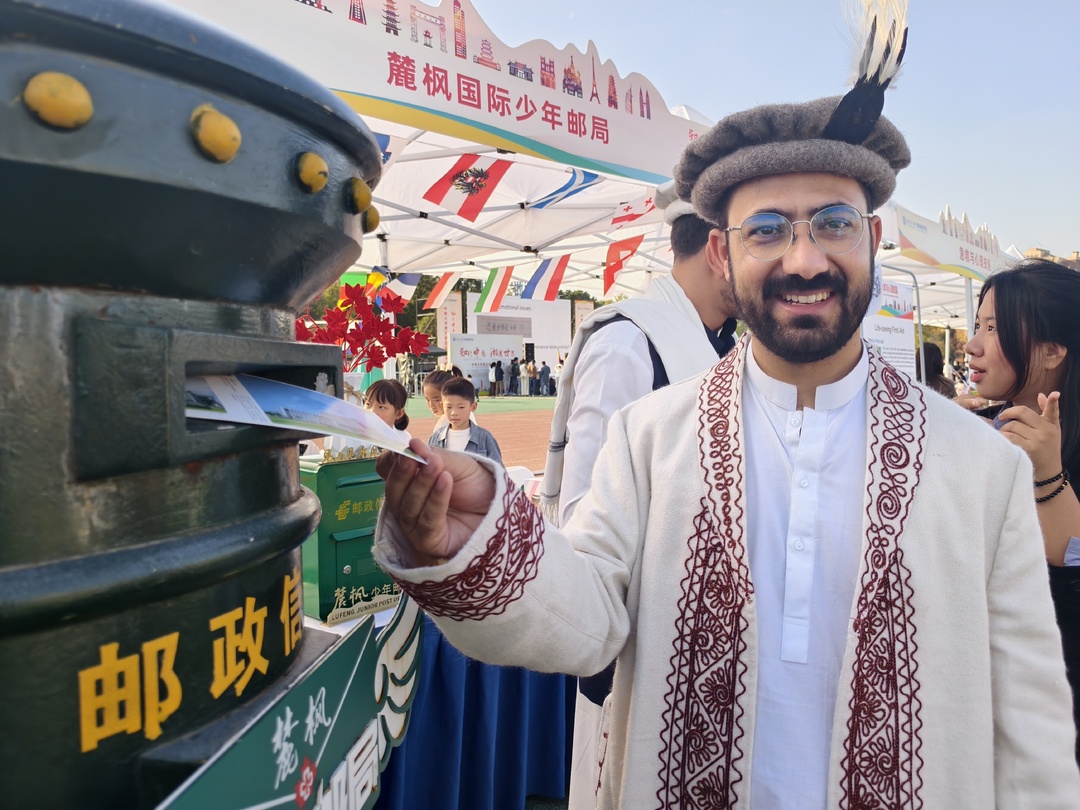 活动现场,外国友人纷纷在邮局展位前自拍留念,将亲手书写的信件投入邮筒时,眼中满是期待。许多参与者在活动后向老师发来信息,感谢这场兼具创意、文化与情感深度的体验。活动策划与组织者麓枫少年邮局辅导员陈中云总结道:“邮票是国家名片,更是连通世界的桥梁。文明因交流而多彩,因互鉴而丰富。”每一次邮戳起落,不仅标志着信件的启程,也是一堂生动的国际理解教育课。这是“一带一路”精神在校园的回响,也是文明互鉴的青春注脚——恰如现场回荡的《跟着邮票去旅行》所唱:“小邮票,大理想,天下一家世界心。”