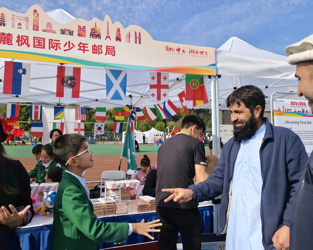 本次文化节由中南大学国际教育学院主办,以“知行中南·湘遇世界”为主题,吸引了上万名中外师生参与。麓枫少年邮局的同学们以邮票为媒、以明信片为舟,构筑起一条连接117个国家的“微型丝绸之路”,让文明在方寸之间交汇融合、互鉴共鸣。将“走读湖湘”与走向世界兼容并行、同频共振。