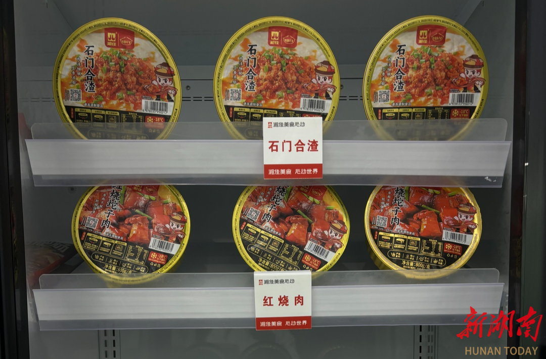 在工厂体验中心,石门肥肠、石门土鸡、盐焗鸡等畅销产品琳琅满目,这些预制菜只需简单加热或解冻即可食用,极为便捷,契合当下快节奏都市生活。