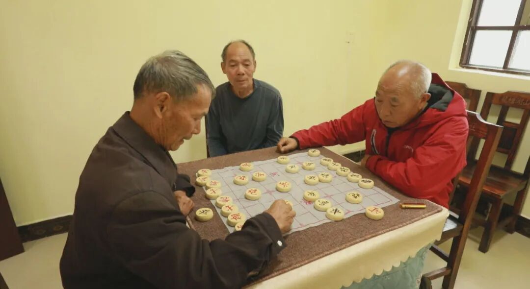 78岁的宁社生老人已在此居住1年多,他喜欢饭后和老友们对弈几局。由于子女常年在外务工,去年他选择入住养老中心。考虑到老人腿脚不便,中心特意安排70岁的龙秋生老人与他结对帮扶,日常打扫、叠被等事务都有照应,这种“一对一”互助模式让老人倍感温暖。
