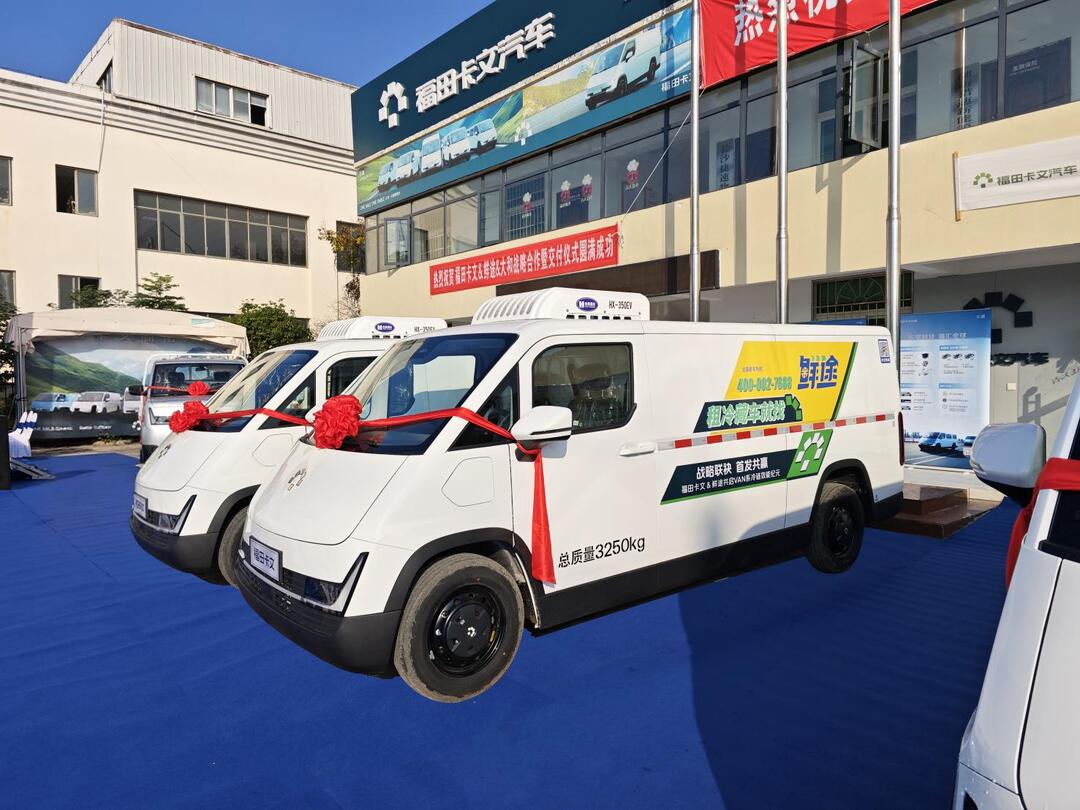 福田卡文和鲜途——战略联袂是针对行业痛点的创新突破,也标志着配冷链市场正式迈入“卡+VAN系时代”。在交车仪式的致辞环节,双方领导均强调了此次合作对行业的革新意义。福田卡文汽车营销副总经理艾子良表示:“福田卡文交付的冷藏车将是刷新冷链行业标准的‘硬核’标杆,交付的是‘最长续航’的底气 ,是‘头部客户’的信任,是‘战略协同’的未来。”鲜途总经理张威表示:“鲜途汽车预计到今年年底保有冷藏车车辆500台,未来五年打造至少具有5000台新能源冷藏车的运力资源平台。期待未来双方在更多领域深化合作,共同推动新能源冷链物流行业迈向更高质量的发展新阶段。”此次战略合作标志着城配冷链市场正式进入“VAN系时代”。通过技术升级与场景创新,双方将共同破解行业痛点,推动冷链物流向高效化、智能化、绿色化方向发展。