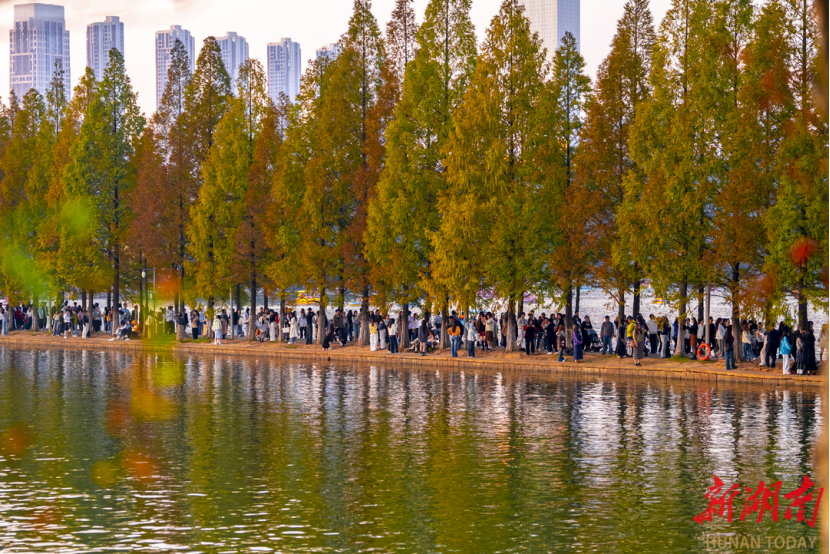 The photo, taken on November 15, shows a view of the Nianjia Lake at Hunan Martyrs Park, Changsha City. Rows of metasequoias or dawn redwoods here have turned from green to crimson. Their reflections paint the lake in vibrant hues, drawing crowds of residents to admire the scenery and take photos. (Photo/Tong Zhenxi, Hunan Daily)