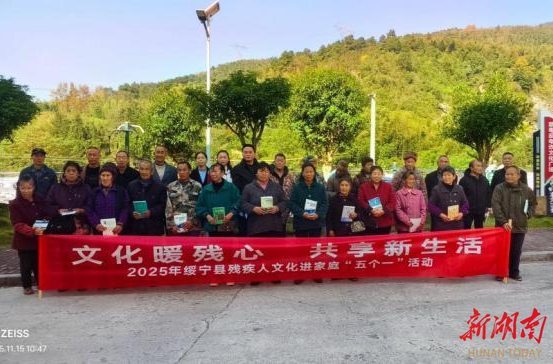 为丰富残疾人精神文化生活,鼓励他们走出家门、融入社会,11月15日,绥宁县残疾人联合会组织工作人员和志愿者深入红岩镇石家村、红岩村,面向50名残疾人开展“五个一”文化助残活动。通过精心安排系列活动,将温暖与关怀切实送到残疾人的心坎上。