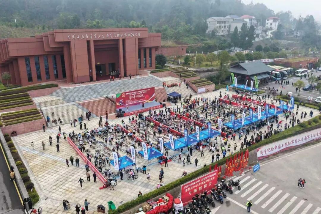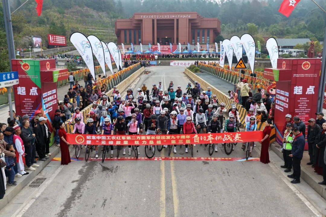 清晨的中国工农红军第二方面军长征出发地纪念馆广场上人头攒动、气氛热烈,数百名参赛选手早早抵达,色彩斑斓的专业骑行服与战车汇成一道流动的风景。