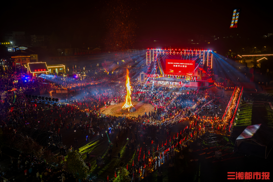 三湘都市报·新湖南客户端11月17日讯(全媒体记者 曾冠霖 通讯员 甘政 庄丹丹)11月16日晚,湖南省张家界市桑植县刘家坪白族乡,中国工农红军第二方面军长征出发地纪念碑巍然矗立,数万名干部群众、革命后代、游客和演职人员汇聚于此,举行纪念中国工农红军第二方面军长征出发90周年暨“刘家坪火把夜”活动,共同缅怀革命先辈的丰功伟绩,传承和弘扬伟大的长征精神。