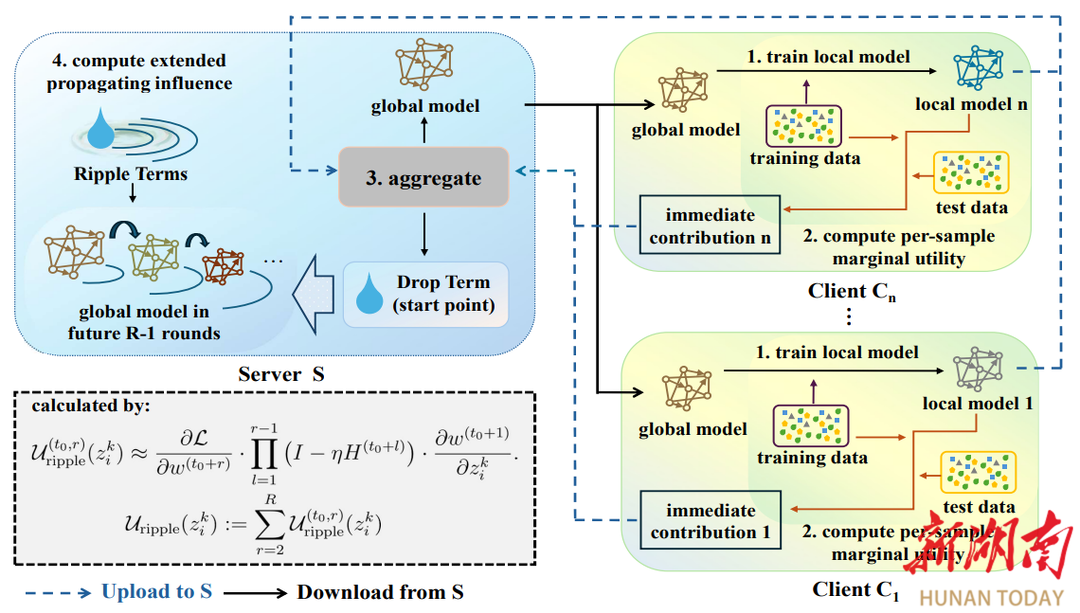 湖南日报·新湖南客户端11月17日讯(通讯员 池雨萱 何浈锐)近日,南华大学计算机学院田纹龙副教授和万亚平教授团队、华中科技大学王号召老师、武汉科技大学鲁剑锋老师、美国Virginia Commonwealth University的Weijun Xiao老师和美国Suffolk University的Zhiyong Xu老师共同在人工智能领域顶级国际学术会议AAAI(Annual AAAI Conference on Artificial Intelligence)发表了题为“Ripple Shapley:Data Influence Attribution in One Federated Training Run”的最新研究论文。该成果以南华大学为第一单位,南华大学计算机学院2023级研究生曾德文为第一作者、田纹龙老师为通讯作者,并被录用为Oral Presentation。AAAI是人工智能领域历史最悠久、涵盖内容最广泛的国际顶级学术会议之一,被中国计算机学会和中国人工智能学会评为A类会议,在学术评价体系中具有高权威性。本届会议录用率仅为17.6%,AAAI 2026会议将于2026年1月20日至27日在新加坡举办。