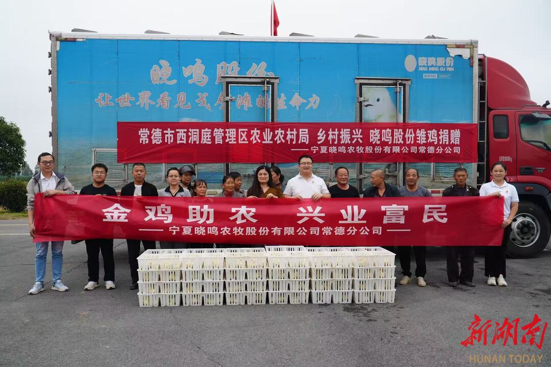 今年10月,晓鸣股份联合西洞庭管理区农业农村局,向当地脱贫户捐赠了15800只优质鸡苗