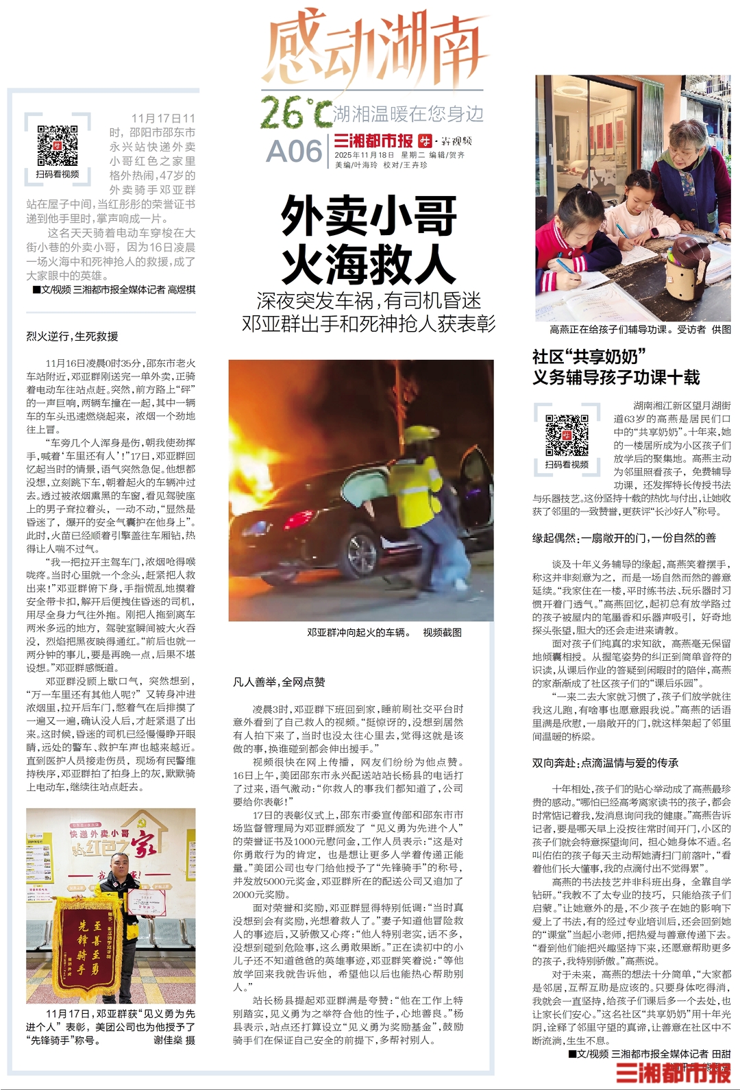 冲进火海中救司机,外卖小哥获表彰