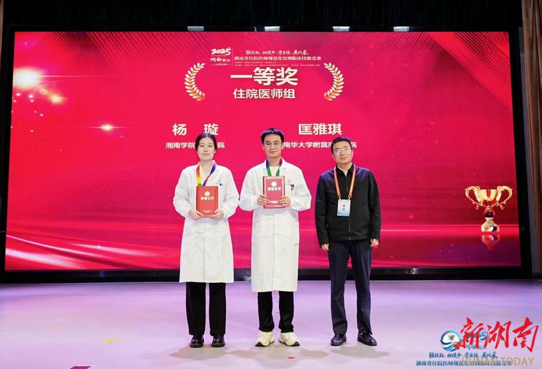 湖南日报·新湖南客户端11月18日讯(通讯员 罗海燕)初冬雁城,群英荟萃。在刚刚结束的2025年湖南省住院医师规范化培训临床技能竞赛中,南华大学附属南华医院代表队凭借扎实的临床基础、精湛的操作技巧和出色的团队协作,从全省28家住培基地的138名精英选手中脱颖而出,荣获“团体三等奖”。个人奖项方面更是成绩斐然:内科住院医师匡雅琪斩获个人一等奖,全科住院医师陆丽瑤荣获个人二等奖,神经内科带教老师李欣获得带教老师组三等奖,充分彰显了南华医院“医教协同、教学相长”的显著成效。