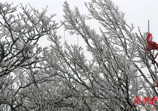 Tianmen Mountain in Zhangjiajie ushers in its first rime spectacle of this winter on November 17. As a cold wave sweeps across Hunan recently, temperatures on Tianmen Mountain at an elevation of over 1,500 meters plummet below freezing. Branches wrapped with glistening rime sway in the wind, creating a dreamlike landscape. (Photo/Xiang Feng)