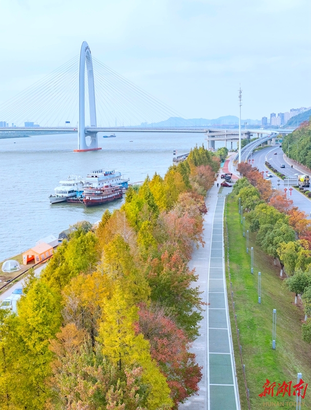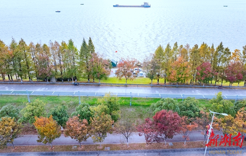 11月18日,初冬时节,长沙市开福区湘江风光带红、橙、黄、绿等色彩错落交织,共同勾勒出一幅纵深立体的斑斓长卷,延绵江岸,景色宜人。 湖南日报全媒体记者 李健 摄