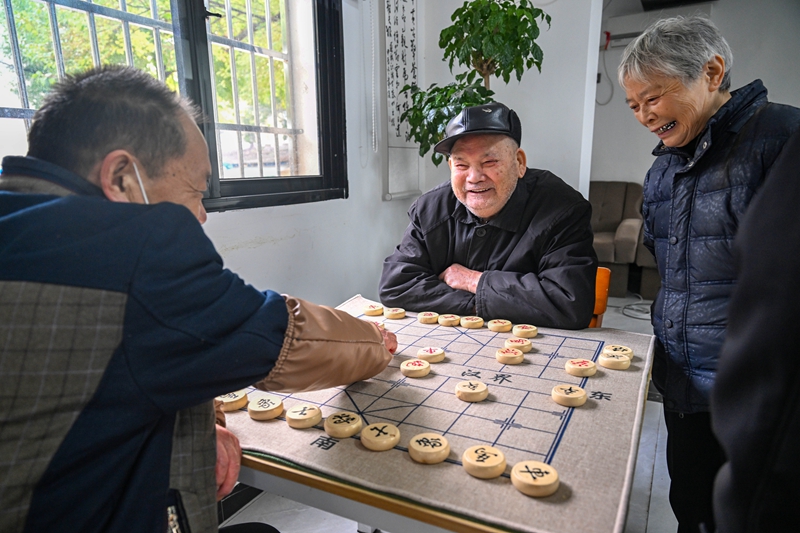11月18日,汉寿县龙阳街道城东社区日间照料中心,老人们在下象棋 。湖南日报全媒体记者 郭立亮 鲁融冰 摄影报道