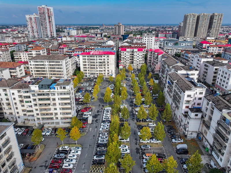 11月18日,汉寿县龙阳街道的鸡鸣观巷停车场供群众免费停车。湖南日报全媒体记者 郭立亮 鲁融冰 摄影报道