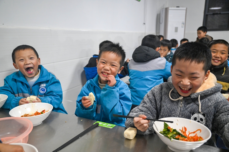 11月18日,汉寿县爱心学院,孩子在食堂吃饭。近年来,该县探索打造民生实事“七张名片”:公共车位免费停车、除中小学校外行政事业单位“拆围透绿”、涉企行政审批和政务服务全程代办、为精神病等特殊患者送医送药上门、为80岁以上老人免费提供午晚餐、为五类困境家庭学生每天免费提供“一杯牛奶和一个鸡蛋”、集中供养困境儿童。此举全面提高政府效能,群众获得感、幸福感不断增强。湖南日报全媒体记者 郭立亮 鲁融冰 摄