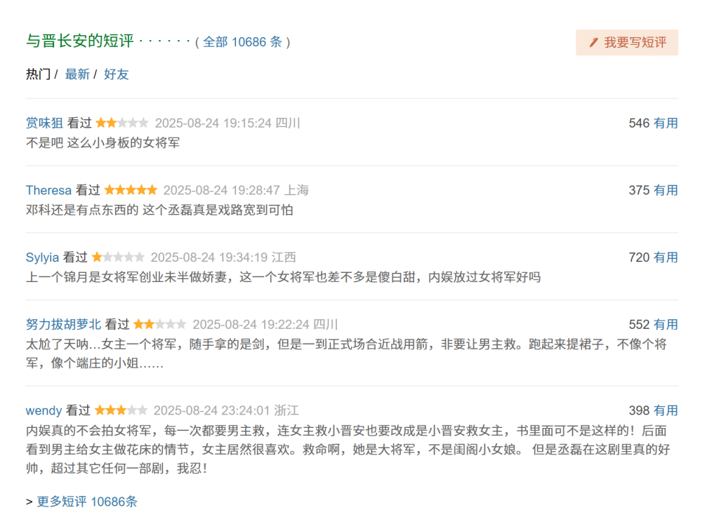 《与晋长安》高赞评论
