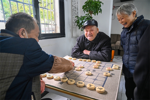 On November 18, seniors play Chinese chess at a care center in Chengdong Community, Longyang Neigborhood, Hanshou County. (Photo/Guo Liliang and Lu Rongbing, Hunan Daily)