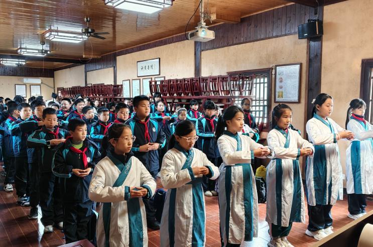 课程还设计了多层次的文化体验环节。低年级学生通过“诗词拼贴画”,以稻壳、秸秆为材料,将《悯农》等古诗意境转化为立体艺术创作;中高年级学生则参与“古法磨豆浆”等传统技艺实践,在动手操作中感受民间生活智慧。值得一提的是,在神龙书院举行的拜师仪式,将文化传承推向高潮。活动组织者王老师表示:“这样的仪式教育,能在孩子们心中种下尊重传统、感恩师长的种子。”