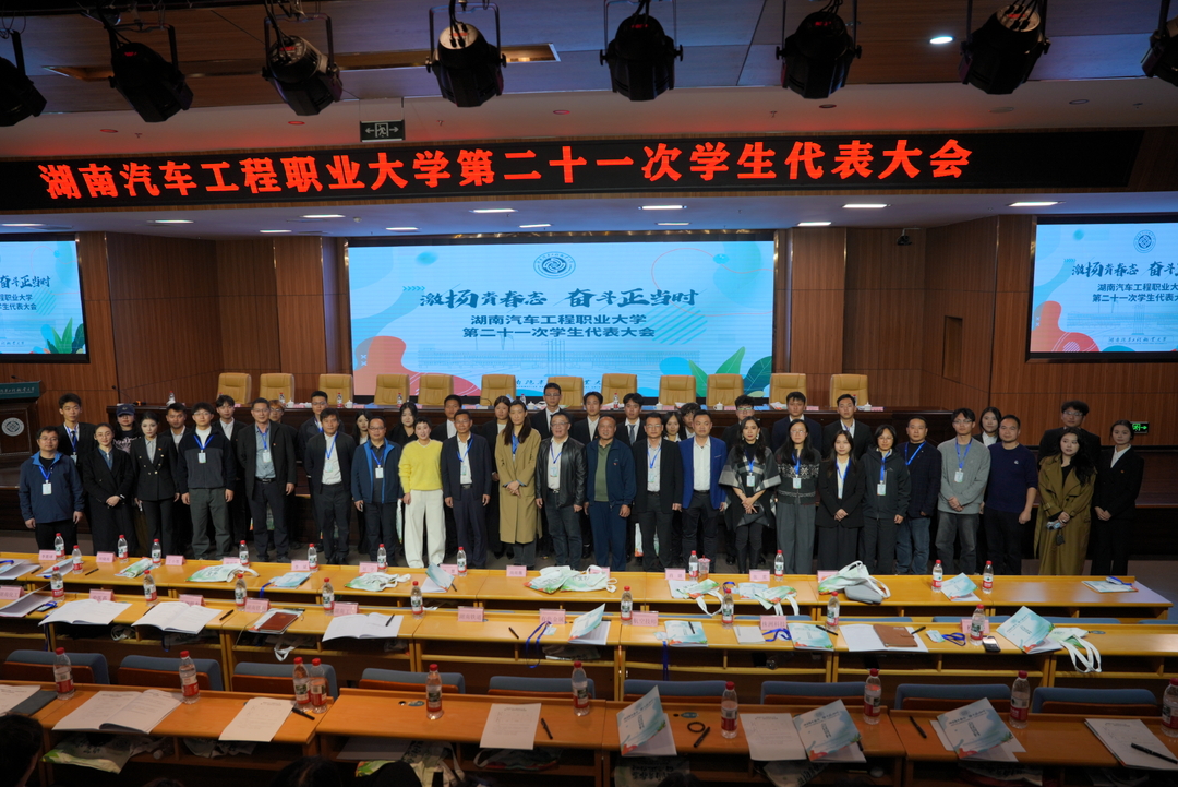 近日,湖南汽车工程职业大学第二十一次学生代表大会在汽车楼一号报告厅成功举行。学校党委委员、副校长刘平国,校团委、学工处、各二级学院相关负责人,兄弟院校代表以及三百余名学生代表参加了会议。